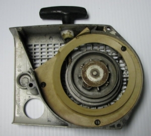 This is a used starter assembly with fan housing for Stihl models 045 and 056.